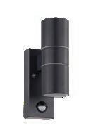 LED-AußenWandleuchte, 2-flg., H: ca. 21 cm, Edelstahl oder Anthrazit, inkl. 2x GU10/3W LED à 240 Lumen, Leuchtmittel nicht austauschbar, Bewegungssensor. 27190085/00,01