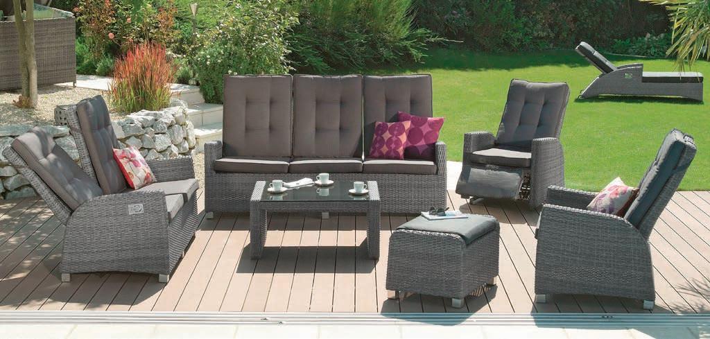 Garten-Lounge, Kunststoff-Geflecht grau, Alu-Gestell. Inkl. Kissen grau. Ohne Deko und Dekokissen. 13501010/00-03