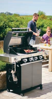BBQ-Station, schwarz, 50 mbar, aus pulverbeschichtetem Stahl, Primezone mit Seitentisch, 3,5 kW, klappbare Seitentische, Seitenbrenner mit 3 kW, Haupt-Grillfläche ca. 60x45 cm. Inkl. Grillrostsystem mit Halter, Deckelthermometer, beleuchtete Drehregler und Abdeckhaube.