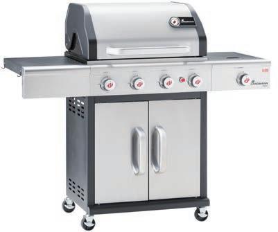 Gasgrillwagen, Saphire Black, 4x 3 kW Edelstahlbrenner, 3,5 kW Infrarot-Seitenbrenner, integrierte Piezo-Zündung, Grillfläche ca. 64x 43 cm, Gusseisen-Grillrost emailliert, Temperaturanzeige im Deckel, LED beleuchtete Kontrollknöpfe, Stellmaß ca. 142x120x57 cm. 15980015/02