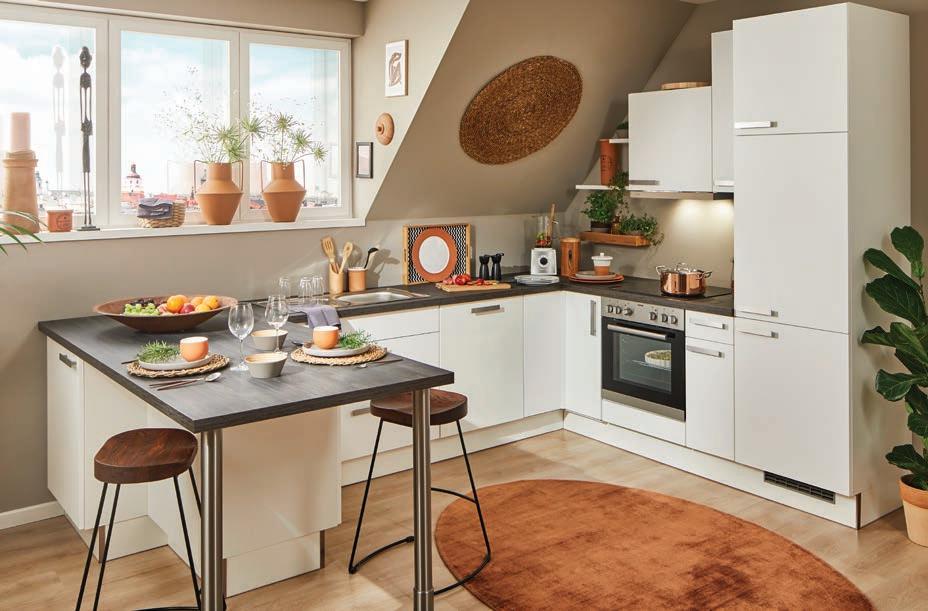 MEINE KÜCH E. ✓ Induktionskochfeld B: ca. 80 cm, IKB84431XB ✓ Einbaubackofen BPK435060B, EEK** A+ ✓ Einbaukühlgerät G120FS, EEK* F ✓ Dunsthaube GD5870V, EEK** A INKL. -E-GERÄTE Einbauküche „Elbao“, Front Beton quarzgrau Nachbildung, Absetzung Beton anthrazit Nachbildung, B: ca. 182 + 283 cm. Inkl. Edelstahlspüle S3. Ohne Zubehör und Deko. Inklusive Dunsthaube Inklusive Induktionskochfeld EXTRA HOHER KORPUS Geräteabbildung ähnlich. PREIS INKL. LIEFERUNG 5699.- Weitere Farben und Fronten wählbar. Auf Wunsch auf Ihr Raummaß planbar. Inklusive Einbaubackofen Inklusive Einbaukühlgerät Einbauküche „Esilia“, Lacklaminat grafitschwarz ultramatt, Akzente Stadum Eiche Nero Nachbildung, Arbeitsplatte Beton Sand Nachbildung, B: ca. 480 + 307x180 cm. Inkl. Edelstahlspüle S3. Ohne E-Geräte, Zubehör und Deko. Auf Wunsch auf Ihr Raummaß planbar. Weitere Farben und Fronten wählbar. Einbauküche „Antavo“, Fronten Akoni Wood Nachbildung, Akzent salbeigrün samtmatt, Arbeitsplatte in Marmor Avorio Nachbildung, ca. 367x247 cm, Insel ca. 173x96 cm. Inkl. Einbauspüle Fromhaus D-100 AGAS. Ohne E-Geräte, Zubehör und Deko. PREIS INKL. LIEFERUNG 6999.ANGEBOT OHNE E-GERÄTE! Besteck, 60-tlg. Edelstahl, bestehend aus je 12 Messern, Gabeln, Löffeln, Kaffeelöffeln, Kuchengabeln. 26630036/00 69.99 Besteck, 60-tlg. AKTIONSPREIS 60Teilig 1. INDIVIDUELLE BERATUNG – KOSTENLOS Wir nehmen uns für Ihre Küchenberatung besonders viel Zeit und gehen individuell auf Ihre Wünsche, Bedürfnisse und Arbeitsabläufe ein. 2. COMPUTER-PLANUNG – KOSTENLOS Mit modernster CAD-Technik wird Ihre neue Küche in nahezu fotorealistischer Darstellung am Computer millimetergenau auf Ihre Raummaße angepasst. 3. INDIVIDUELLE FINANZIERUNG Mit einem Finanzkauf über unsere Partnerbank bleibt Ihnen genügend Spielraum für andere Dinge, die Spaß machen. Sprechen Sie uns an. 4. AUFMASS BEI IHNEN VOR ORT 3) Damit Ihre Küche später so exakt wie ein Maßanzug passt, ist eine absolut genaue Vermessung erforderlich. Gerne übernehmen wir dies für Sie mit unserem präzisen Laser-Aufmaß. IN 8 SCHRITTEN ZU IHRER TRAUMKÜCHE! K0323 I 06 *Energieeffizienzklasse, Spektrum der verfügbaren Energieeffizienzklassen für Haushaltskühlgeräte, Geschirrspüler und Waschmaschinen A - G