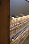 Voll im Trend: Der Materialmix aus Glasfronten, matten Fronten, Hirnholzaplikationen oder Stahl mit massivem Holz.
