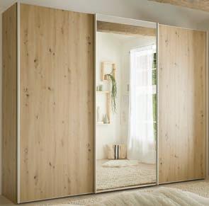 Schwebetürenschrank, Korpus und Front Artisaneiche Nachbildung, 1 Spiegel, Griffleiste alufarbig, ca. 280x200x68 cm. 1990003/99