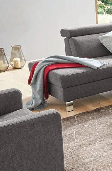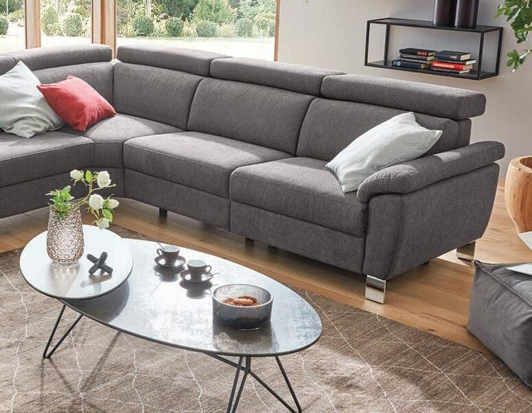 Polstergarnitur, Bezug Stoff Mammut, Füße Alu, Sitz Kaltschaum oder Federkern preisgleich, Stellmaß ca. 262x330x 173 cm. Ohne Deko. 04560052/99