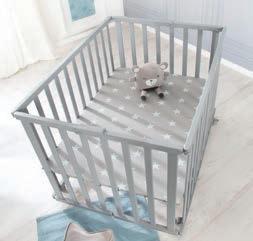 Laufgitter Indibär, Holz weiß, ca. 100x100 cm, sicheres Spielgitter, inkl. Schutzeinlage und Rollen.