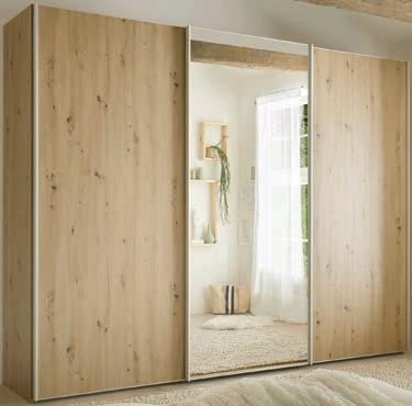 Schwebetürenschrank, Korpus und Front Artisaneiche Nachbildung, 1 Spiegel, Griffleiste alufarbig, ca. 280x200x 68 cm. 1990003/99