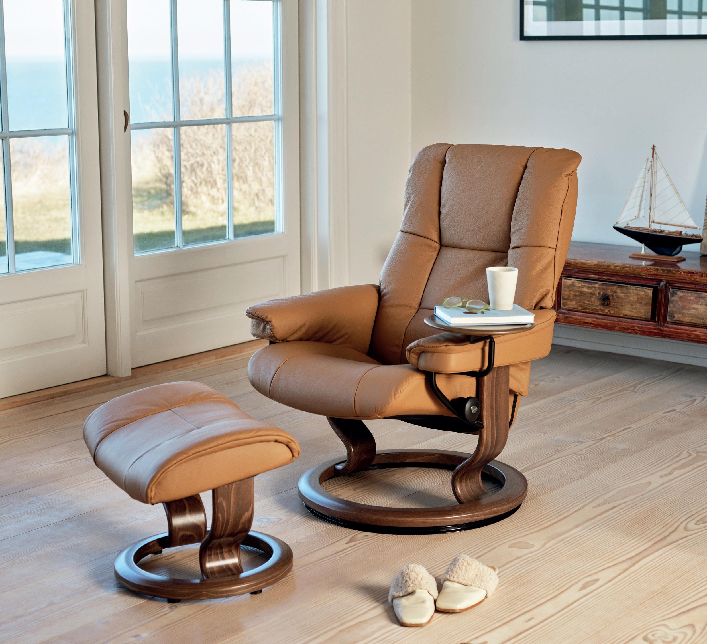 Stressless® Mayfair inkl. Hocker mit Classic Untergestell in den Größen (S/M/L) in folgenden farben in Leder „Paloma“ erhältlich: New Cognac/Sand/Chocolate/Black