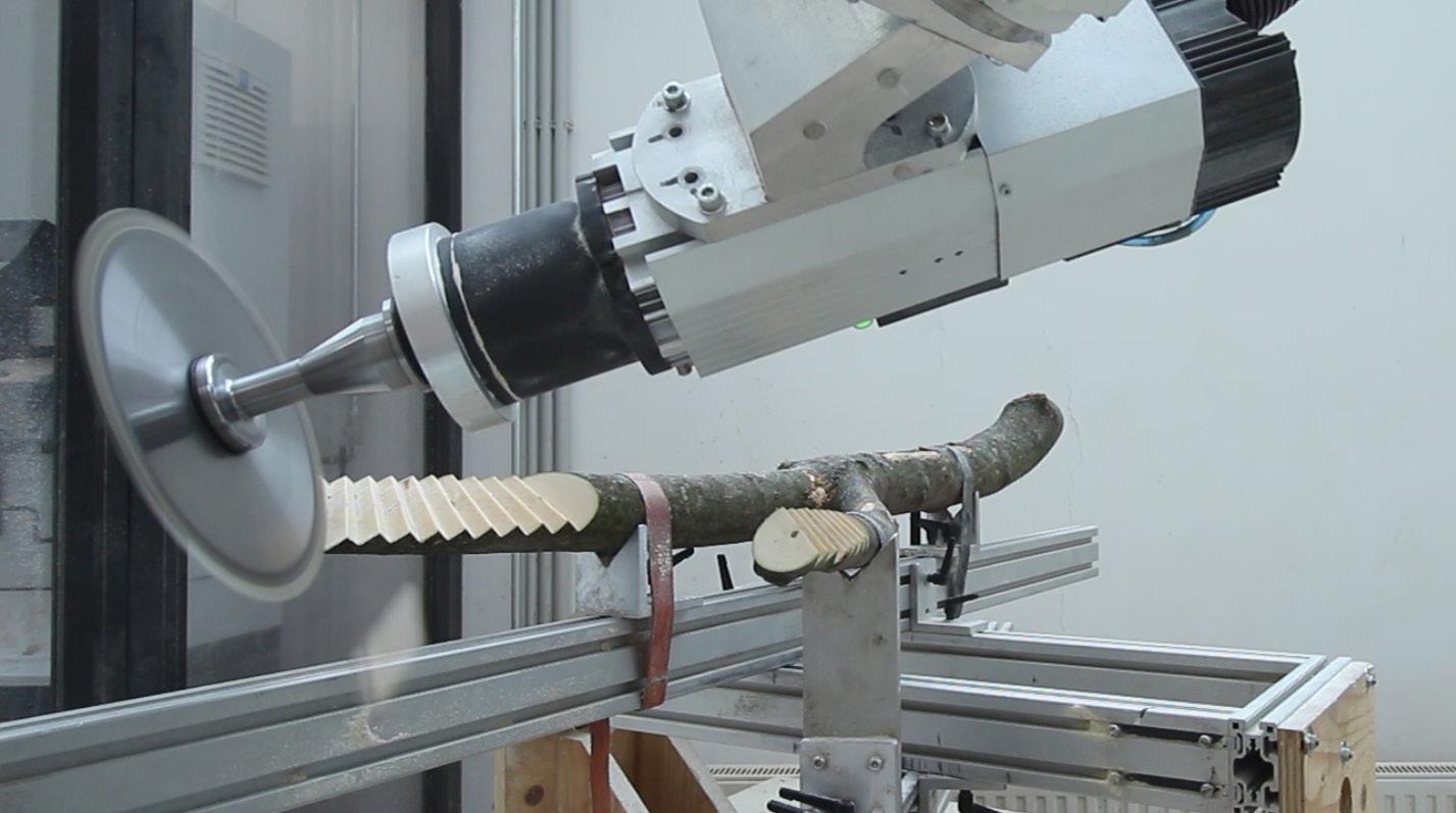 In your recent research project and publication, Conceptual Joining, you investigate material joining techniques for raw wood, where you bypass the traditional process of the conversion of a tree into an element of construction — the material production of timber. Can you describe the motivation behind this research and how certain tools and methods change the way we could approach the design of spaces?