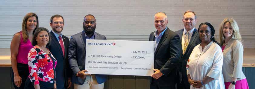 A-B Tech’s Skills Training Employment Program (STEP) has received continued support from Bank of America through a $150,000 commitment over two years. Bank of America also awarded $50,000 last year for STEP, which provides lowincome residents with clearly defined career pathways and placement services for long-term, living-wage jobs.