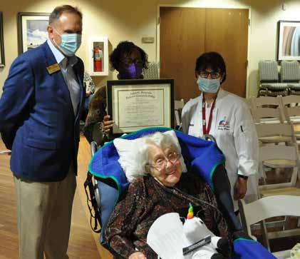 Bernice Buchin Liverett, a 103-year-old resident of the NC State Veterans Home in Black Mountain, had a lifelong wish to earn a culinary degree. On Veterans Day, her dream came true as A-B Tech President John Gossett presented her with an honorary Culinary Arts degree.