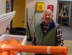 Kevin Kimrey with roll of carbon fiber