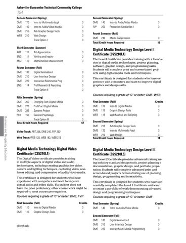 Digital Media Technology Design Level I Certificate (C25210L4) The Level I Certificate provides training with a foundation in digital media technologies, project planning, software, graphic design, and programming skills. Students will complete print and screen-based projects using digital media tools and techniques. This certificate is designed for students who have experience with computers and want to improve digital graphics and design skills. Courses requiring a grade of “C” or better: DME, WEB