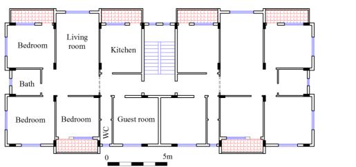 Apartments located in the middle are exposed to the sun and air from only one direction