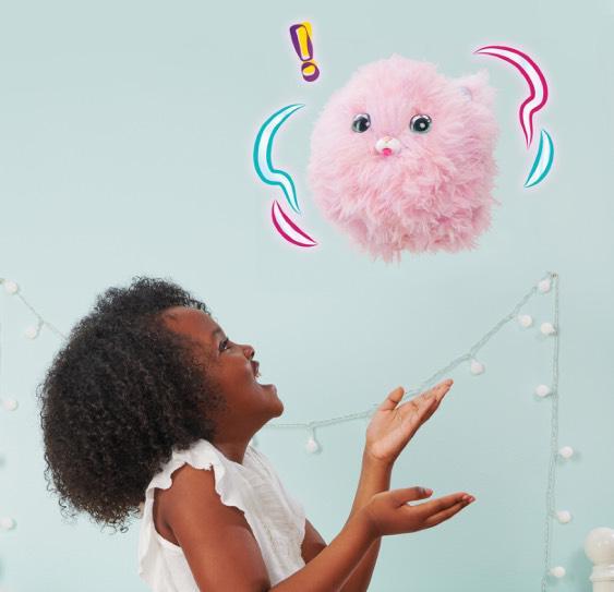 Transforms from fluff to pet. Play with your Fluff to earn its trust and experience its surprise reveal. Loves to dance, sing, roll, snuggle and more. Over 100 sounds and reactions.