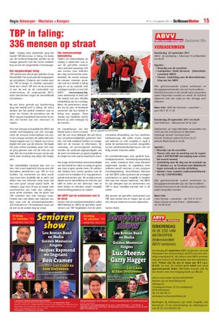 Deelnemers uit regio Mechelen verzamelen om 7u50 aan het treinstation te Mechelen. Openbaar vervoer Turnhout-Geel: vertrek Turnhout station 8u19 en 9u23 vertrek Markt 8u24 en 9u26 Agenda : • Woordje van de voorzitter • Thema: info over de werking van de organisatie ’t ANTWOORD (vereniging waar armen het woord nemen) + toelichting over de dag van de armoede op 17 oktober a.s. te Turnhout met fakkeltocht tegen armoede en sociale uitsluiting • Spreker: Leen Lauwens (opbouwmedewerkster bij ‘t ANTWOORD) Alle geïnteresseerde oudere werklozen en (brug)gepensioneerden zijn van harte welkom. Afsluitend kunnen in de rubriek varia nog andere zaken besproken worden. Meer info: Carlo Verreyt – voorzitter – tel. 014 31 53 57 Edwin Gebruers en Leen Proost – medewerkers – tel. 014 40 03 60