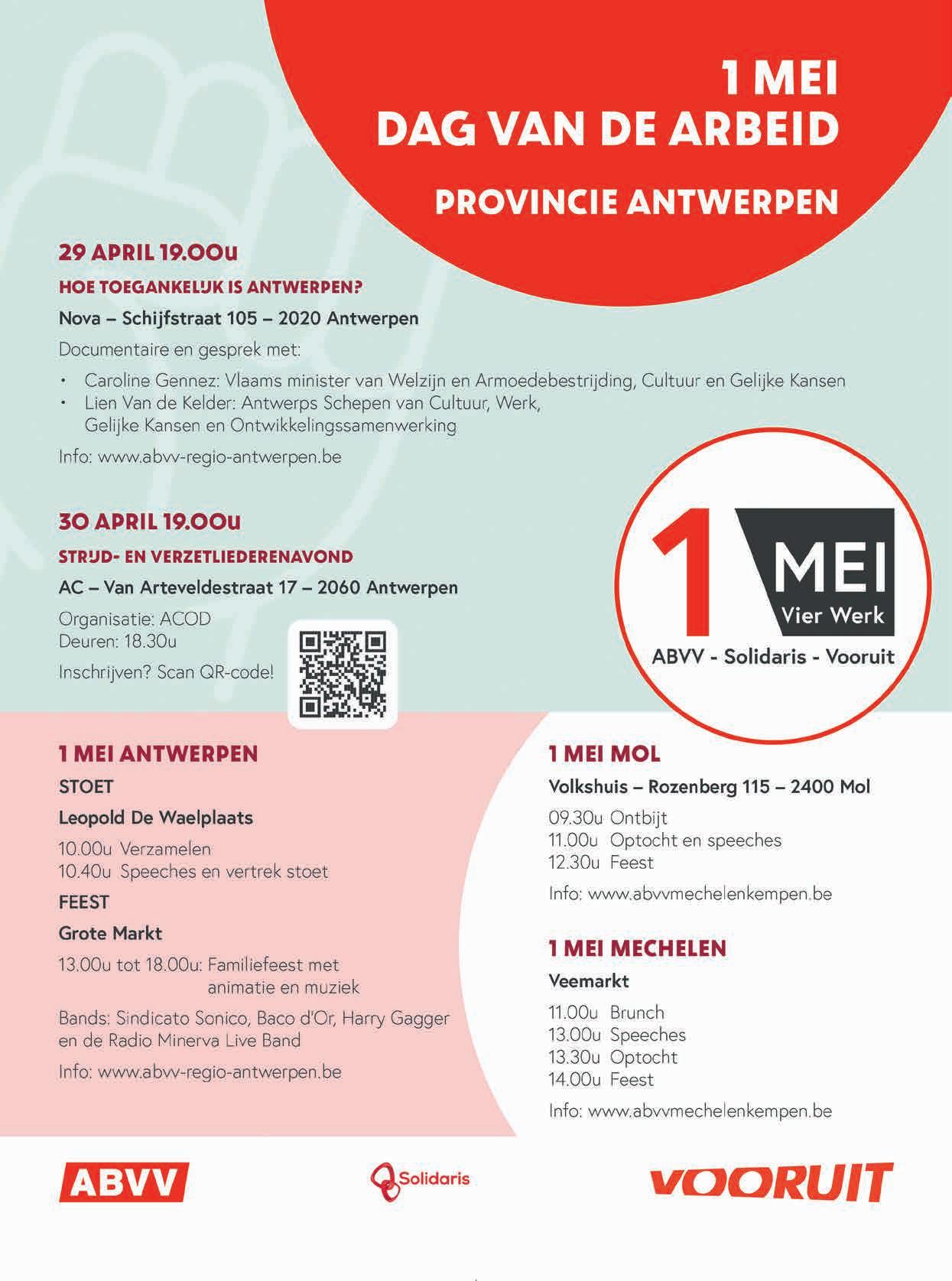 Graag inschrijven vóór 9 april. Mail naar niel.hendrickx@abvv.be of tel. 0476 65 88 37. Verdere details worden na inschrijving gedeeld.