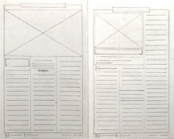 En la primera, se pensaba maquetar el diseño en tres columnas, basado en una revista informativa.