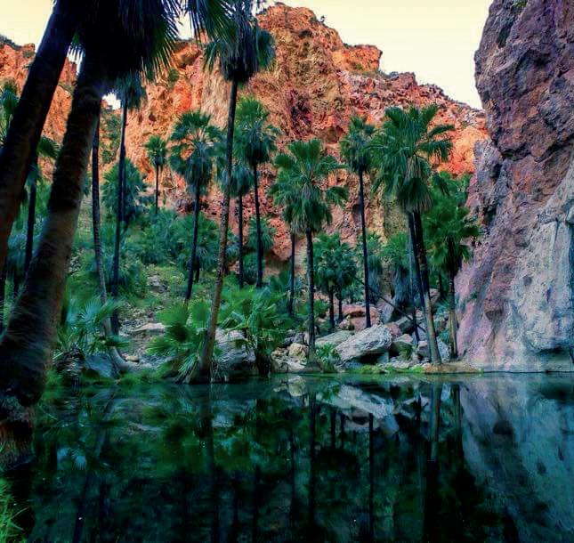 Sus senderos te invitan a admirar su vegetación y fauna fuera de lo común, con cactáceas y alguna que otra palmera perdida, los gorriones sonorenses revolotean y escucharas a sus ardillas chichimocos, las únicas de su especie que tienen cuerdas vocales y emiten un sonido que parece una risita humana.