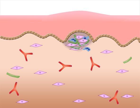 Aumento das fibras de colagénio e elastina + organização da rede vascular;