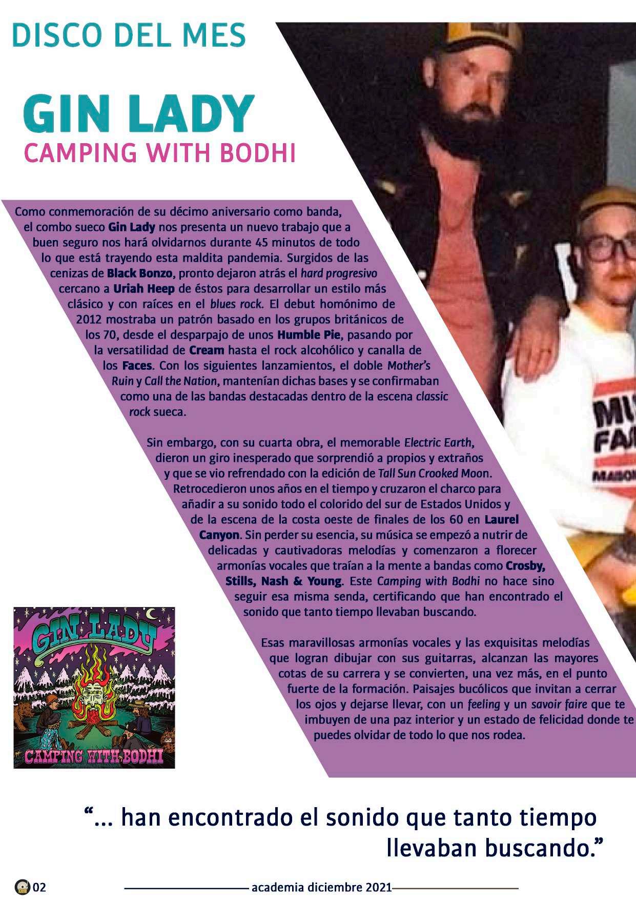 Portadaydiscodelmes:GinLady.Discosrecomendados: BlueRodeo,Failure,KingBuffaloySpidergawd.Especial: Lomejorde2021.Efeméride:50añosdeHunkyDory,de DavidBowie.Contraportada:Agradecimientos.