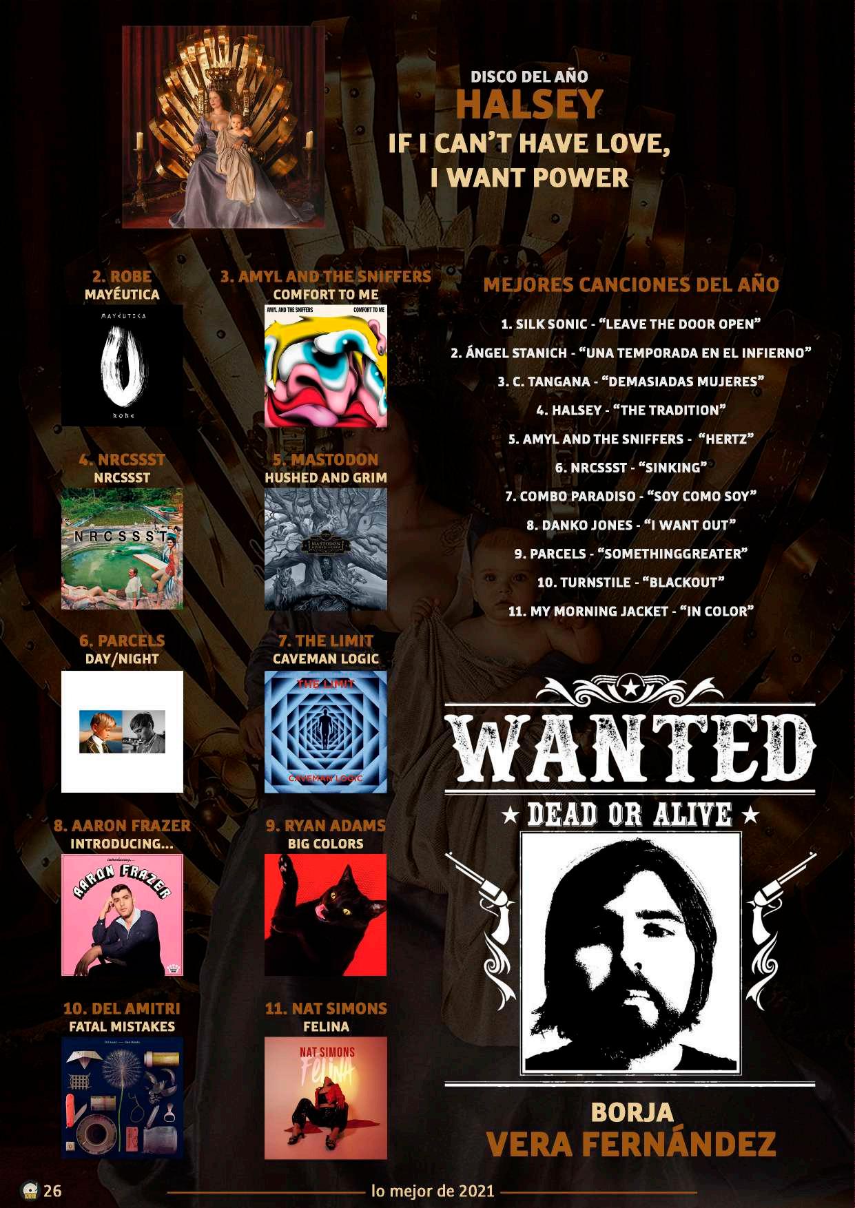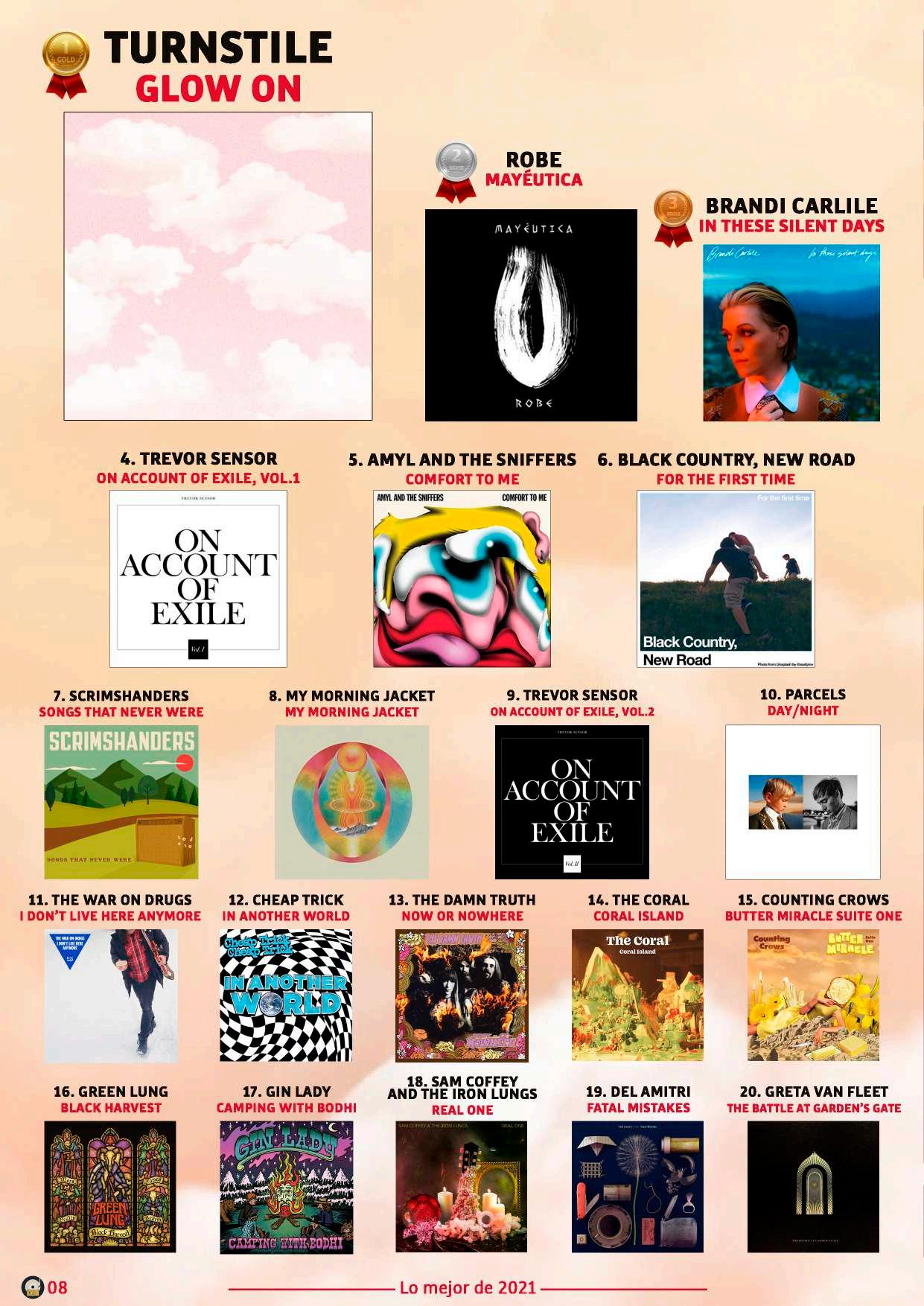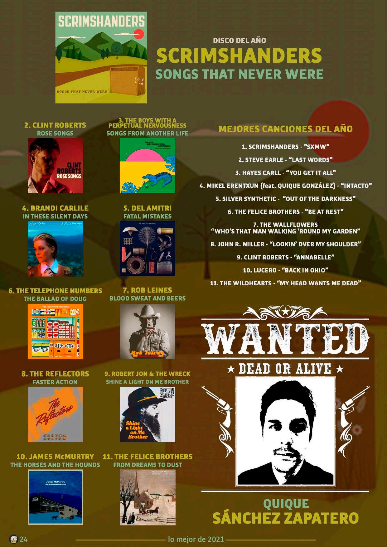 MEJORESCANCIONESDELAÑO 1.THEWEATHERSTATION-“TRIEDTOTELLYOU” 2.COUNTINGCROWS-“BOBBYANDTHERAT-KINGS” 3.THECONNELLS-“UNIVERSALGLUE” 4.BRANDICARLILE-“BROKENHORSES” 5.ERABATERA-“IZPIGALDUA” 6.THEARTISANALS-“HEADINGSOMEWHERE” 7.GRETAVANFLEET-“STARDUSTCHORDS” 8.ETXEKALTE&HABI-“ARIMAK” 9.THEWARONDRUGS-“HARMONIA’SDREAM” 10.MANICSTREETPREACHERS-“STILLSNOWINGINSAPPORO” 11.YOCIERVO-“SALBANAZAZU” 11.BLACKCOUNTRY,NEWROAD FORTHEFIRSTTIME 9.DELAMITRI FATALMISTAKES