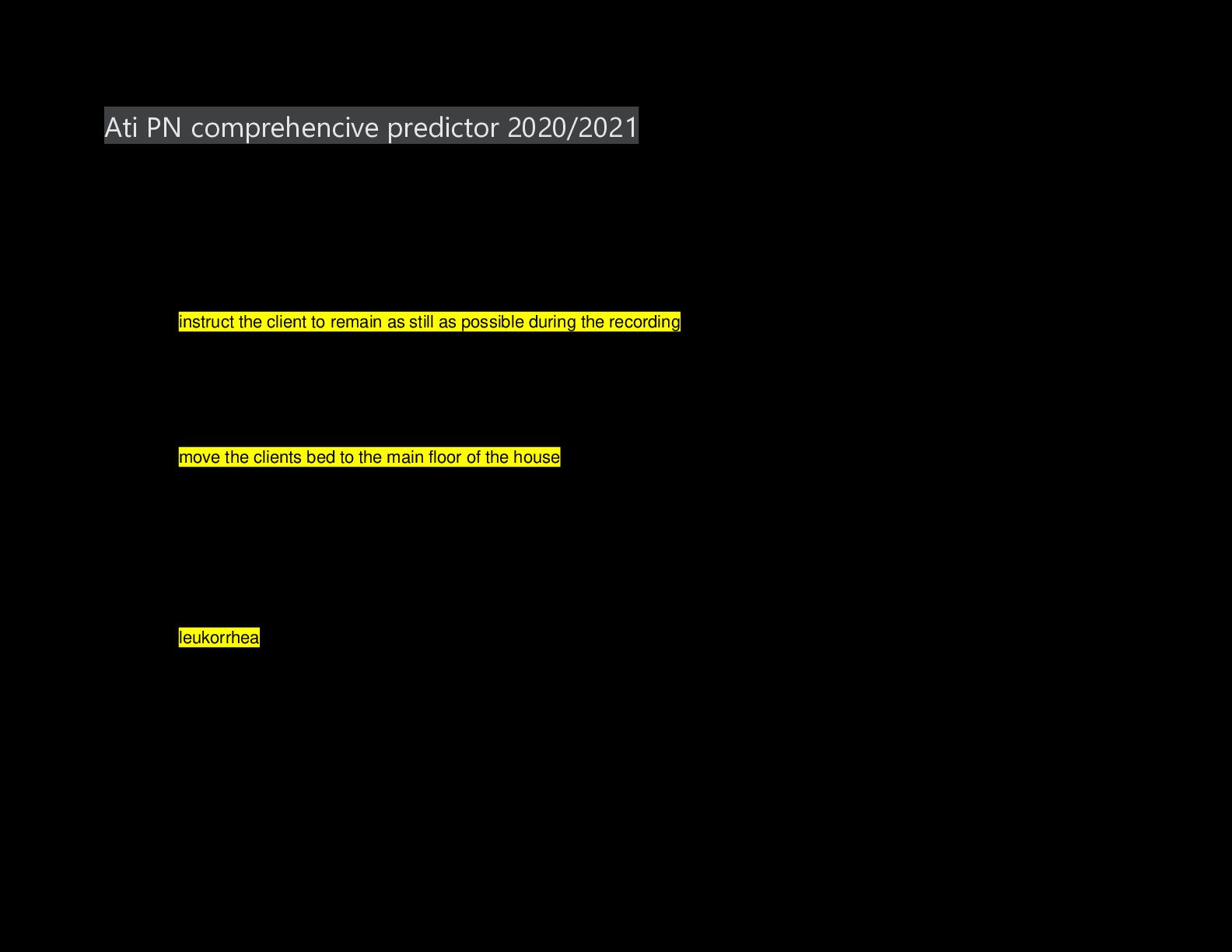CLICK BELOW TO ACCESS THIS DOCUMENT https://scholarfriends.com/singlePaper/188890/ati-pn-comprehensive-predictor-20202021-180questions-with-all-correct-answers-highlighted