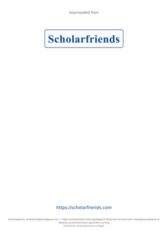 https://scholarfriends.com Downloaded by: writerforacademic@gmail.com | https://scholarfriends.com/singlePaper/273876/care-of-clients-with-maladaptive-patterns-ofbehavior-acute-and-chronic-psychiatric-nursing Distribution of this document is illegal.