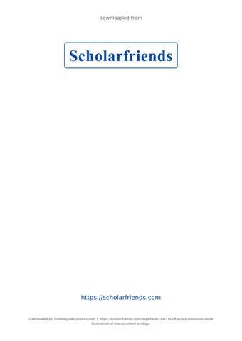 Downloaded by: browsegrades@gmail.com | https://scholarfriends.com/singlePaper/206775/cft-quiz-nutritional-science Distribution of this document is illegal.