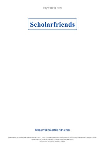 https://scholarfriends.com Downloaded by: writerforacademic@gmail.com | https://scholarfriends.com/singlePaper/312630/chem-214-general-chemistry-ii-labexperiment-005-chemical-kinetics-crystal-violet-dye-reaction-o Distribution of this document is illegal.
