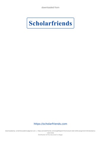 https://scholarfriends.com Downloaded by: writerforacademic@gmail.com | https://scholarfriends.com/singlePaper/273121/exam-tele-5240-assignment-04-blackberrycase-study Distribution of this document is illegal.