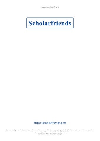 https://scholarfriends.com Downloaded by: writerforacademic@gmail.com | https://scholarfriends.com/singlePaper/274892/final-exam-advanced-placement-englishlanguage-and-composition-ap-lang-and-comp-513-final-exam Distribution of this document is illegal.