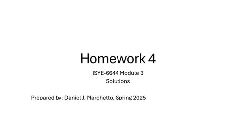 Homework 4 ISYE-6644 Module 3 Solutions Prepared by: Daniel J. Marchetto, Spring 2025