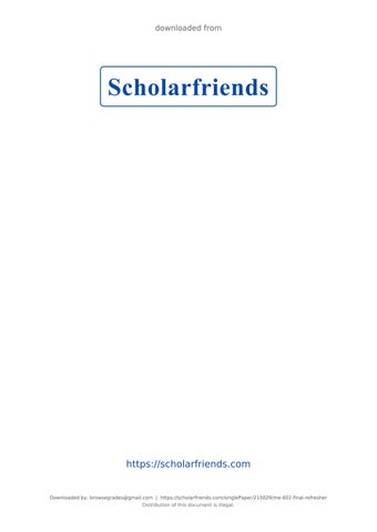 Downloaded by: browsegrades@gmail.com | https://scholarfriends.com/singlePaper/215029/me-602-final-refresher Distribution of this document is illegal.