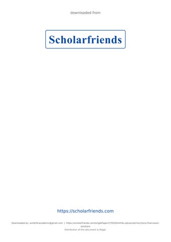 https://scholarfriends.com Downloaded by: writerforacademic@gmail.com | https://scholarfriends.com/singlePaper/279359/mhf4u-advanced-functions-final-examsolutions Distribution of this document is illegal.