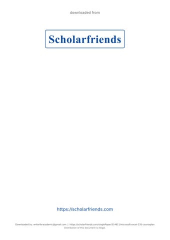 Downloaded by: writerforacademic@gmail.com | https://scholarfriends.com/singlePaper/314611/microsoft-excel-235-courseplan Distribution of this document is illegal.