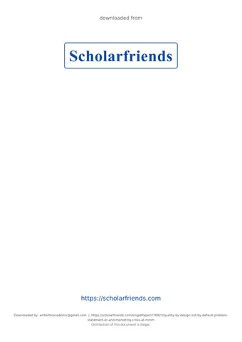 https://scholarfriends.com Downloaded by: writerforacademic@gmail.com | https://scholarfriends.com/singlePaper/276923/quality-by-design-not-by-default-problemstatement-pr-and-marketing-crisis-at-mmm Distribution of this document is illegal.