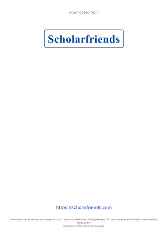 https://scholarfriends.com Downloaded by: writerforacademic@gmail.com | https://scholarfriends.com/singlePaper/273152/study-guide-public-health-law-and-ethicsstudy-guide-i Distribution of this document is illegal.