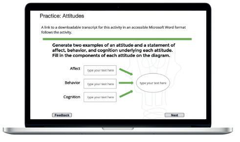 PsycLearn drives deeper engagement than traditional printed textbooks, presenting content in a variety of formats. Students encounter repeated opportunities to practice course concepts, reinforcing learning with periodic lowstakes assessments.