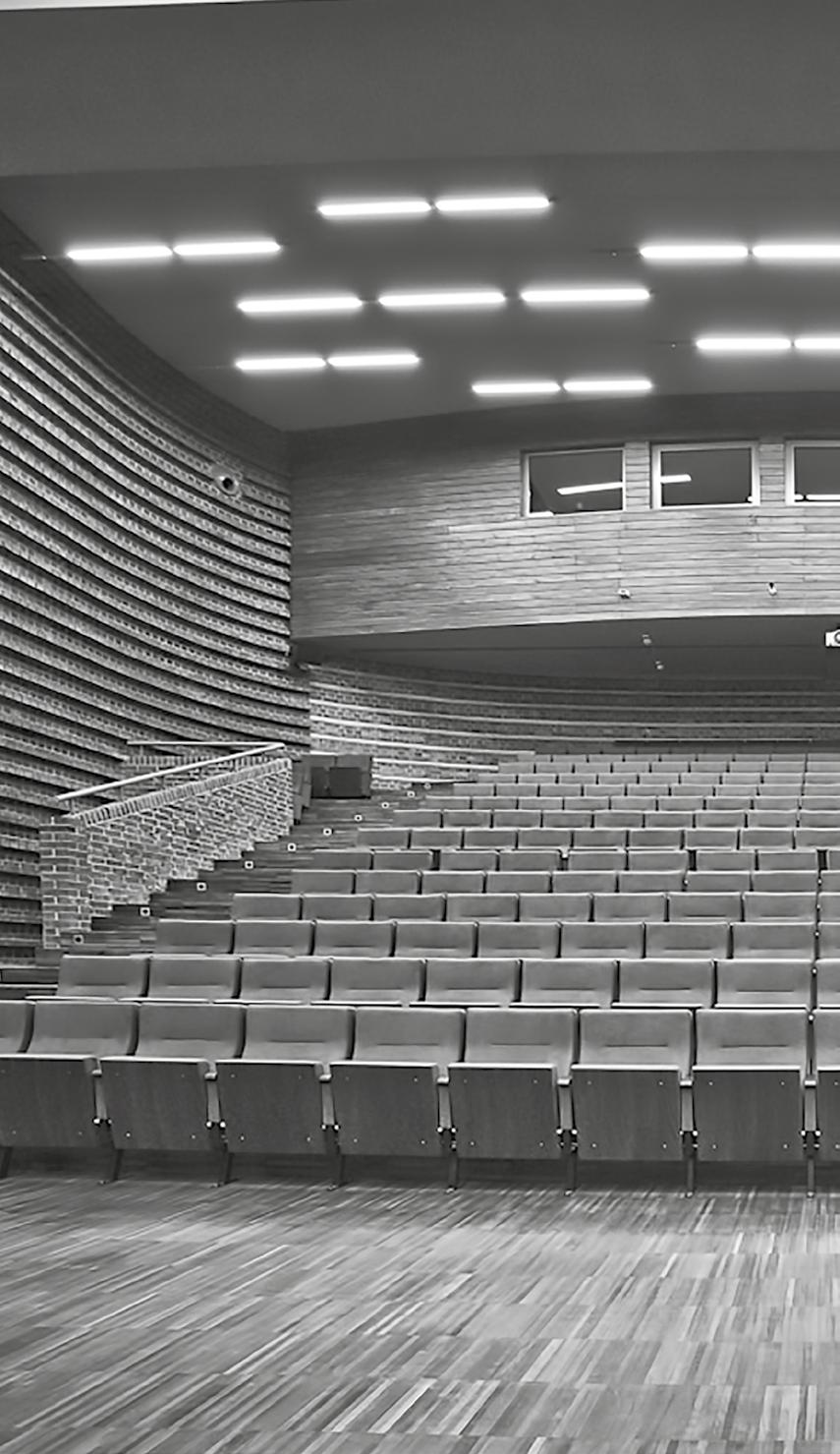 The harmony of tradition and modernness is visible at the Academy on an increasingly bigger scale. The year 2013 saw the bringing into use of Building E – a representative teaching-and-concert facility, constituting the core element of the new part of the school’s campus. The new building houses a concert hall, a lecture hall, a ballet hall, a rehearsal hall for large ensembles, a set of teaching and practice rooms, a recording studio, Audiovisual Studio rooms, Computer-Assisted Composition Studio and Theatre and Film Music Studio rooms, an underground car park, and an exhibition space. All the rooms have been built using state-ofthe-art acoustic solutions and above-standard technology; they are highly functional and have original design.