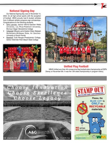 VBHS Unified won their 4th consecutive flag football state championship at ESPN Disney on November 8th. It was the 13th state championship in program history.