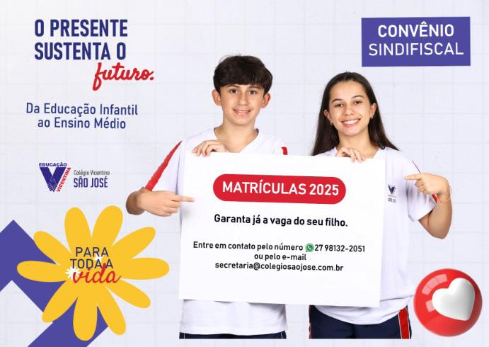 O Sindicato firmou um convênio com o Colégio São José, em Vila Velha, garantindo aos filiados um desconto de 10% nas mensalidades para cada filho ou dependente matriculado na instituição. O benefício é válido para o próximo ano letivo. Para mais informações, os interessados podem entrar em contato pelo telefone (27) 3352-3439.