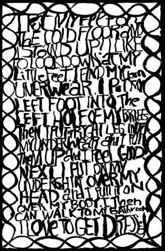 come l’arte possa farsi veicolo di esplorazione della mente attraverso linguaggi non verbali. L’artista afferma: Tutto è nella mente. Tutte le immagini sono mentali. Il lato in bianco e nero è dipinto da quella persona. Quella persona è ciò che divento in trance ipnotica. Il copione è dipinto. Il copione è mentale. Il soggetto è il tempo. Il soggetto è ciò che faccio dopo essermi svegliato e prima di andare al lavoro. Riguarda i dettagli e le emozioni quotidiane. Riguarda il soggetto delle nostre emozioni che fanno cose che non ricorderemo di aver fatto. Il lato destro riguarda il quadro generale ma non è necessariamente reale. Riguarda il paradiso, Dio, i demoni e gli angeli prima della nascita e dopo la morte. Non ci sono parole sul lato destro! È tutto astratto! Sono parti diverse della stessa storia. Rispondono alle domande: Dov’ero prima di nascere? Perché mi accadono cose mentre vivo la mia vita? Dove vado dopo la morte?