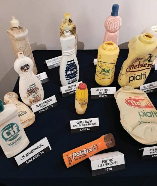 Tra gli articoli in esposizione: involucri di merendine anni ’80, tappi di bibite degli anni ’70, flaconi di shampoo e detergenti con grafiche d’epoca, oggetti del quotidiano ormai scomparsi ma ancora perfettamente riconoscibili. Tutti recuperati nel delta del Po, una delle zone più ricche di biodiversità d’Europa e oggi anche tra le più colpite dall’inquinamento da plastica.