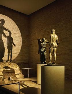 Il suo intervento trasforma lo spazio sacro del tempio nello scenario di una installazione artistica attraverso l’inserimento di un terzo elemento in bronzo: una grande silhouette, che genera, con effetto trompe l’oeil, l’impressione di un’ombra impossibile che suggerisce un contatto virtuale, seppure non concretamente compiuto, tra le due figure. L’esperienza è ulteriormente arricchita da tre atmosfere luminose successive, che nell’arco di venti minuti permettono al visitatore di esplorare l’installazione da prospettive diverse. Le tre situazioni, evocative dei temi della luce, del tempo, della memoria e della metamorfosi, si susseguono nell’ordine: A New Dawn (Una Nuova Alba), The Golden Hour (L’Ora Dorata) e Afterglow (Il Riflesso dell’Attesa). Quello che si crea è la rappresentazione di una scena materna, in cui la Vittoria Alata si libera dello scudo, elemento di difesa, ma che riporta a situazioni di conflitto, per abbracciare teneramente la figura efebica dell’Idolino. Nell’aula che accoglie l’allestimento museale progettato dall’architetto spagnolo Juan Navarro Baldeweg, il visitatore potrà incontrare la Vittoria Alata, un’opera celebrativa realizzata in bronzo con la tecnica della fusione a cera persa indiretta intorno alla seconda metà del I secolo dopo Cristo, e probabilmente ispirata a modelli più antichi. Accanto ad essa, si ammirerà il cosiddetto Idolino di Pesaro, scoperto nella città marchigiana nell’ottobre del 1530 a seguito dei lavori di scavo per le fondazioni della casa del nobile pesarese Alessandro Barignani, alle spalle del Palazzo Ducale. La scultura bronzea ritrae un giovane nudo, dal corpo leggero e armonioso, che reggeva originariamente nella mano sinistra un tralcio di vite destinato a sostenere lucerne e, con molta probabilità, un vassoio nella destra, qualificandosi così come una statua decorativa e funzionale, ovvero un lychnouchos o portalampade per illuminare, come descrisse Lucrezio in un passo del De rerum natura, i banchetti notturni. La visita alle opere è gratuita per tutti gli abbonati all’Abbonamento Musei Lombardia, Piemonte e Valle d’Aosta, grazie all’inclusione di Brixia. Parco archeologico di Brescia romana nell’offerta del circuito, per i cittadini bresciani, in virtù della gratuità istituita dopo l’anno di Brescia Capitale italiana della Cultura e, fino al 6 gennaio 2026 anche per i residenti e i nati nella Provincia di Brescia.