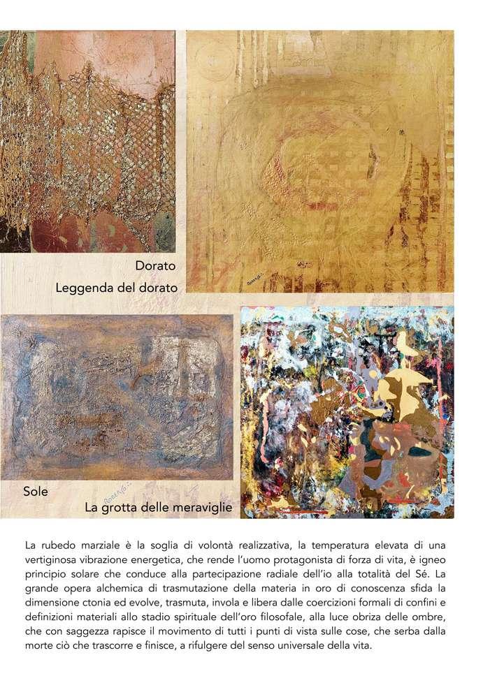 La grande opera alchemica di trasmutazione della materia in oro di conoscenza del Ramirez Anchique sfida la dimensione ctonia ed evolve, trasmuta, invola e libera dalle coercizioni formali di confini e definizioni materiali allo stadio spirituale dell’oro filosofale, alla luce obriza delle ombre, a rifulgere del senso universale della vita. (Fulvia Minetti)