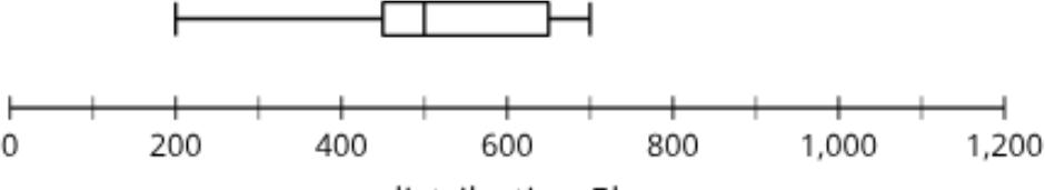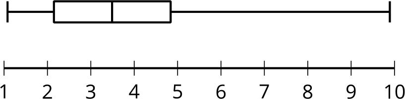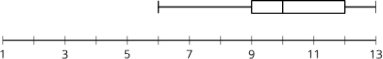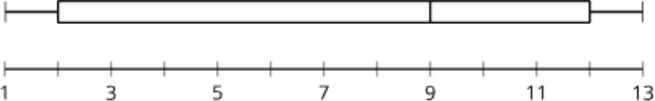 Dé un ejemplo de un diagrama de caja que tenga una mediana y una medida de variabilidad mayor, pero los mismos valores mínimo y máximo.