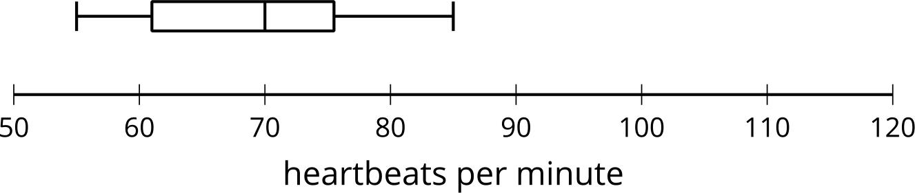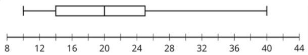 El mínimo debe ser 15, el máximo 95, la mediana mayor que 50 y el rango intercuartílico mayor que 15