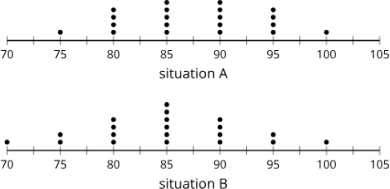 En la lección 6, los estudiantes crean e interpretan representaciones de datos como histogramas, diagramas de puntos y diagramas de caja, además de calcular e interpretar medidas de centro (media y mediana) y medidas de variabilidad (rango intercuartílico y desviación media absoluta). Dado que la mayoría de estos conceptos se refieren a ideas de la escuela media, esta unidad no incluye una evaluación intermedia. Los maestros pueden utilizar la información obtenida de los ejercicios de enfriamiento y los problemas de práctica para evaluar informalmente la comprensión de estos conceptos por parte de los estudiantes antes de continuar con las lecciones restantes de la unidad.