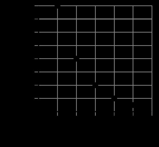 • Un escenario en el que solo la variable dependiente está restringida a números enteros. (Ejemplo de respuesta: El eje X representa la cantidad de espacio disponible para un jardín local y el eje Y representa la cantidad de flores que se plantan).
