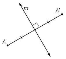 A. Si A' es la imagen de A al girar 180° alrededor de M, entonces sabemos AMA′ debe ser un ángulo 180°. Así que A′ debe estar en la semirrecta MC. También sabemos que las rotaciones preservan la distancia, así que la imagen de A debe ser C